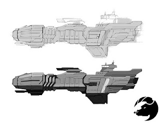 Some ship thumbnails and a WIP concept for the chosen thumb. This will be a battle cruiser/carrier and will be part of our overall scene based on the Unearthly Challenge.