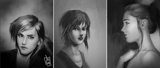 Did some more portrait studies. Left and right (photograph by Lisa Petz) portraits, I used reference. Middle one is from imagination.