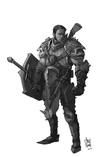 Trying out a different technique/process by drawing some fantasy warrior type character.