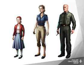 Here are some background characters done for the PSVita game that launched today. Initials sketches were done by Steve High, rendered by me.